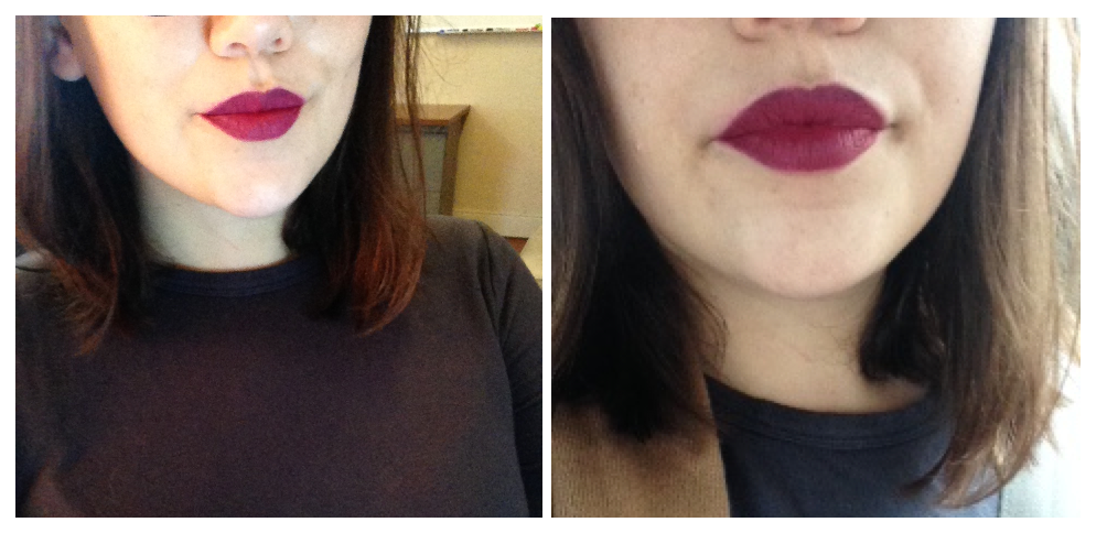 This color comes from maybe two full swipes of the lipstick, it’s very pigmented and dries super fast. I did not feel like I was pulling it off. Also, with a color this dark, you probably need a lip liner or something because as soon as you open your mouth you can see the light insides of your lips.